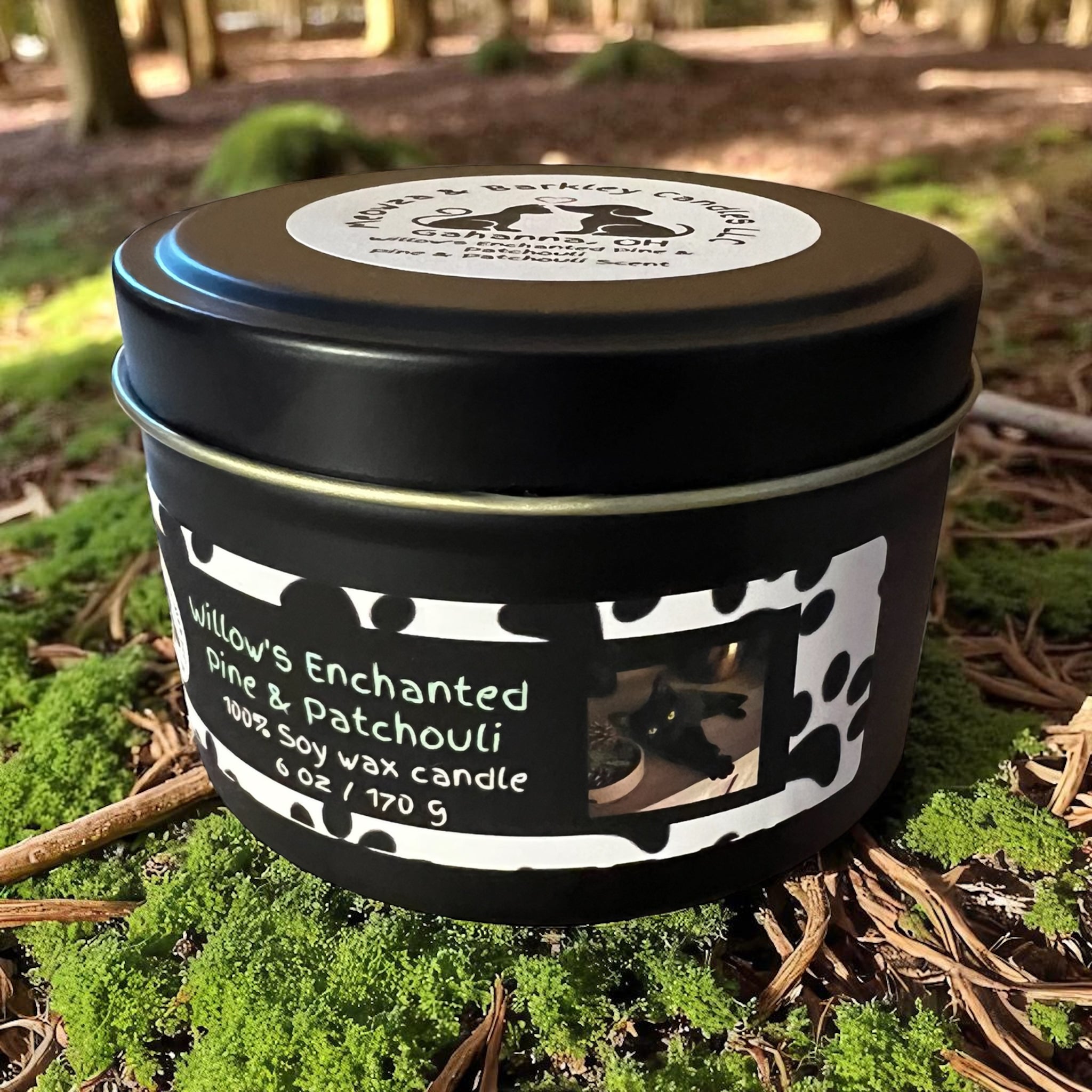 Willow's Enchated Pine and Patchouli - Medium Two Wick Tin 100% Soy Candle - Fresh Pine and Patchouli Scent